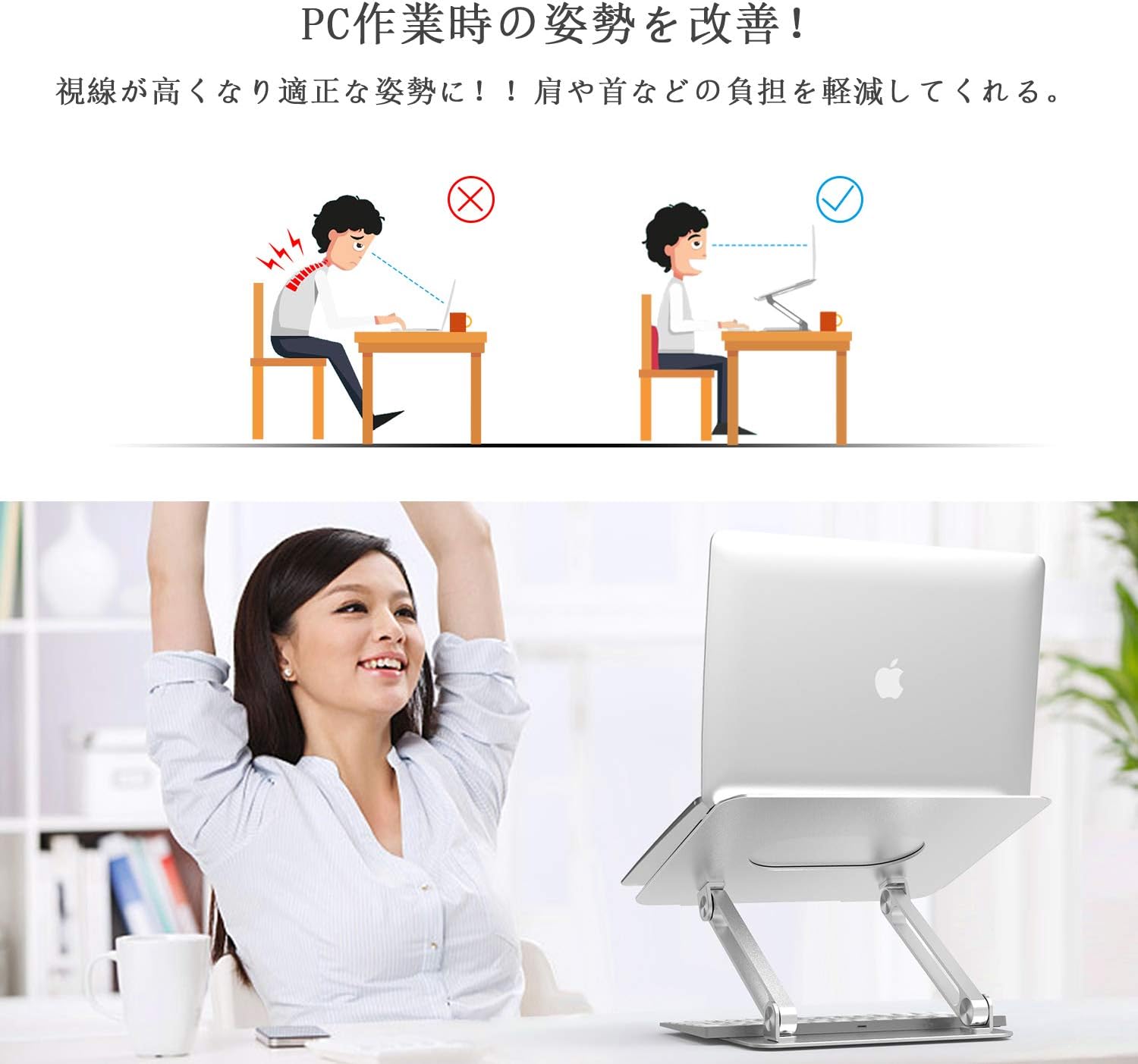 ノートパソコンを覗き込むような姿勢で使っていたので、首痛・肩こり・腰痛を感じるようになりました。